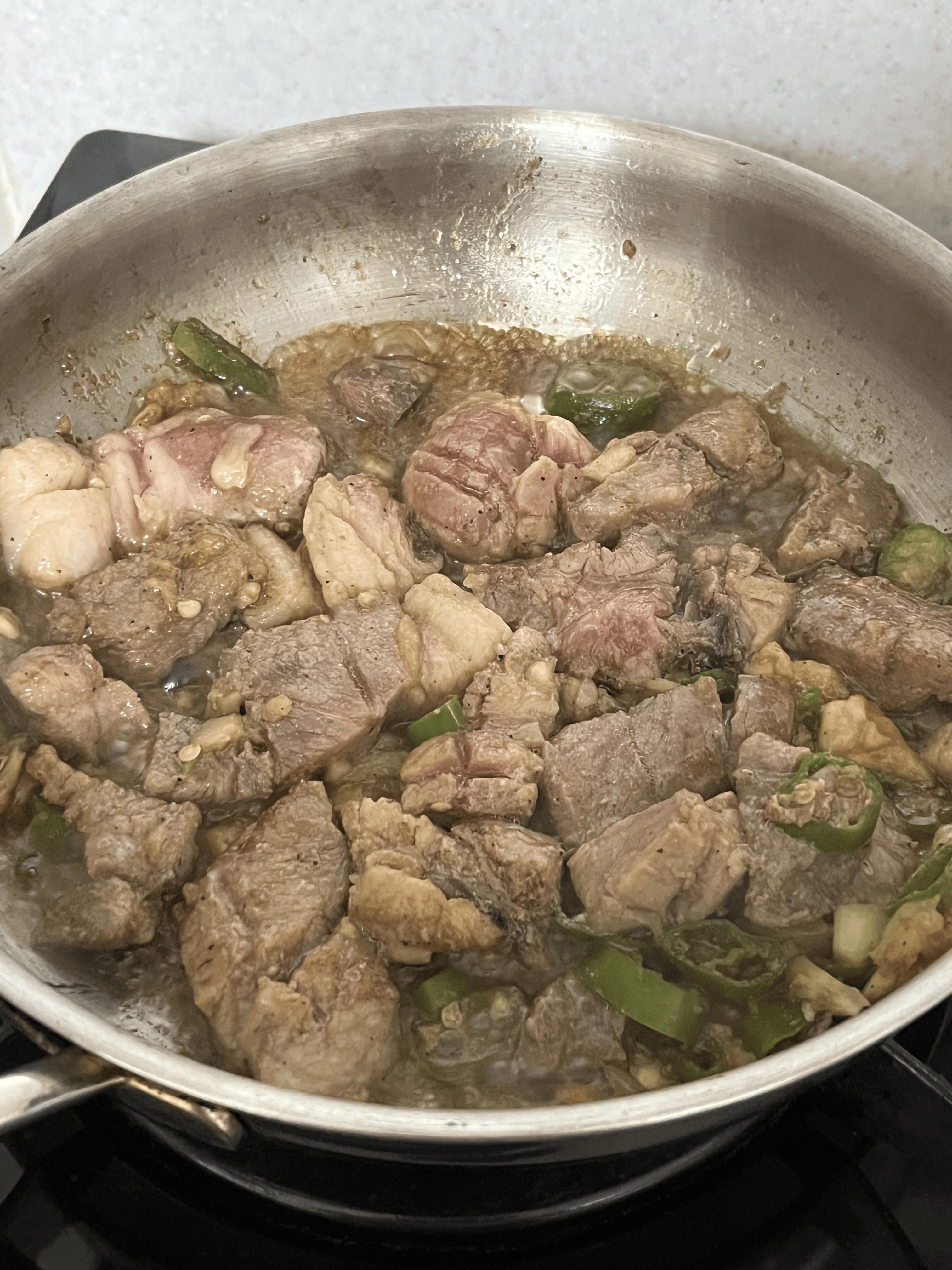 돼지고기에 땡초 마늘 간장을 넣은 볶음 조림일지도?